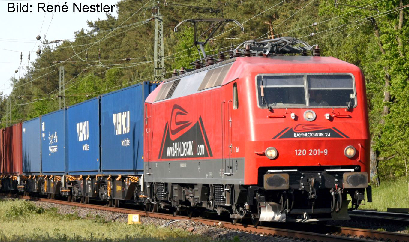 | elektrická lokomotiva v barevném schematu „Bahnlogistik24“ |