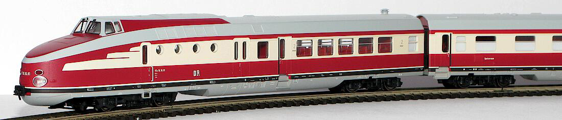 měřítko 1:120 - rozchod kolejí 12 mm osvětlení - 3 reflektory vpředu, 2 světla vzadu, přepínatelné podle směru jízdy vnitřní interiér vozu instalováno osvětlení interiéru digitální rozhraní podle NEM 651 s konektorem 6pin minimálni projížděný poloměr 310 mm 820 mm - celková délka modelu přes nárazníky 4+4+4+4 - celkový počet náprav nebo rozložení náprav