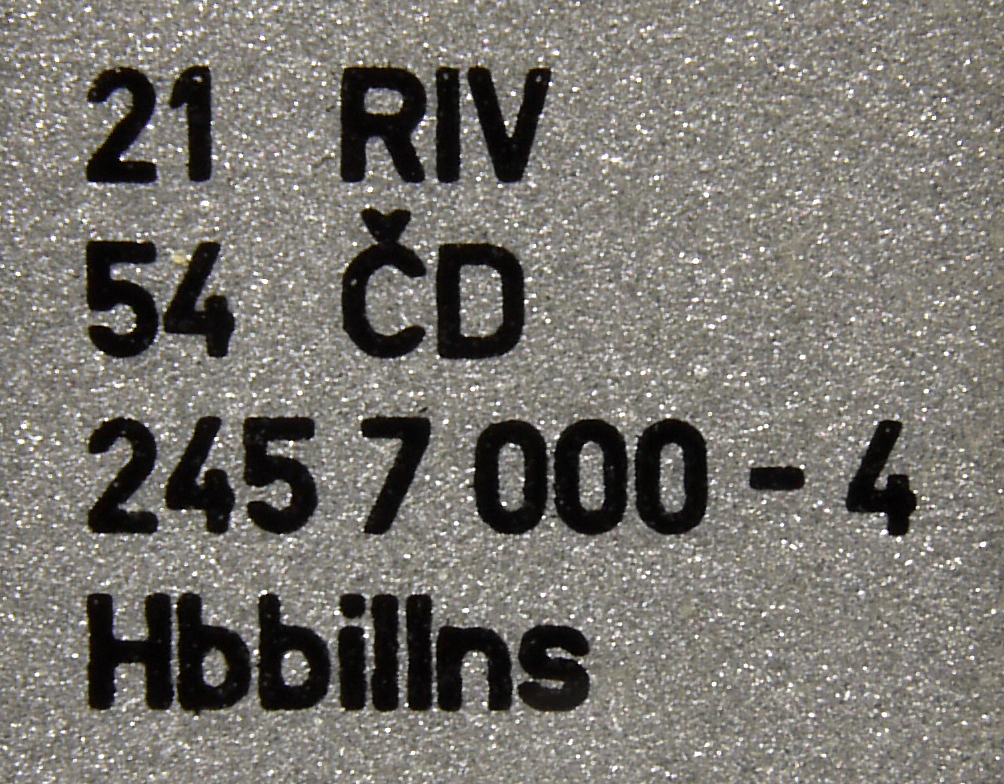| • 21 54 245 7 000-4 | → | nákladní, nezávislé nápravy, pevný rozchod, ve vlastnictví železniční správy, RIV, PPV |