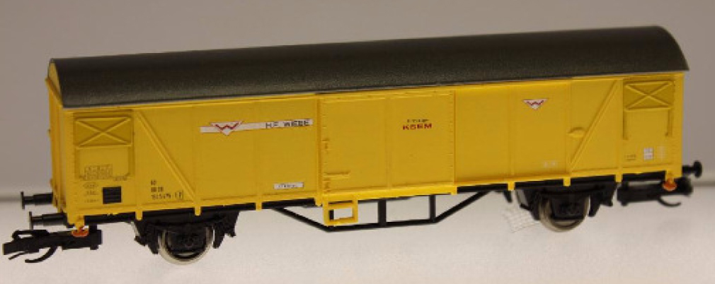 | krytý nákladní vůz žlutý s černou střechou „Wiebe-KSEM” |