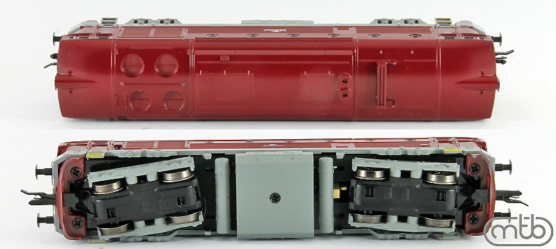 měřítko 1:120 - rozchod kolejí 12 mm osvětlení - 3 reflektory vpředu, 2 světla vzadu, přepínatelné podle směru jízdy 4 hnané nápravy 0 bandážovaných náprav kinematika krátkého spřáhla (KKK) podle normy NEM 358 digitální rozhraní podle NEM 658 s konektorem PluX16 setrvačník 137 mm - celková délka modelu přes nárazníky 4 - celkový počet náprav nebo rozložení náprav