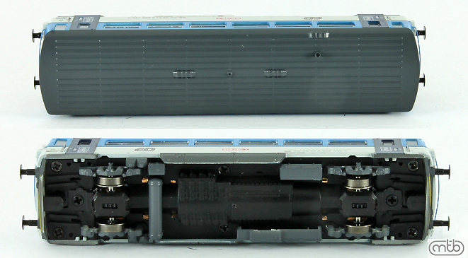 měřítko 1:120 - rozchod kolejí 12 mm osvětlení - 3 reflektory vpředu, 2 světla vzadu, přepínatelné podle směru jízdy 2 hnané nápravy 0 bandážovaných náprav vnitřní interiér vozu instalováno osvětlení interiéru kinematika krátkého spřáhla (KKK) podle normy NEM 358 digitální rozhraní podle NEM 662 s konektorem Next18 116 mm - celková délka modelu přes nárazníky 2 - celkový počet náprav nebo rozložení náprav