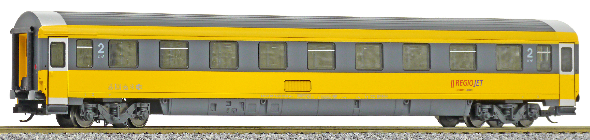 | rychlíkový vůz v barvách „RegioJet“ 2. tř. |