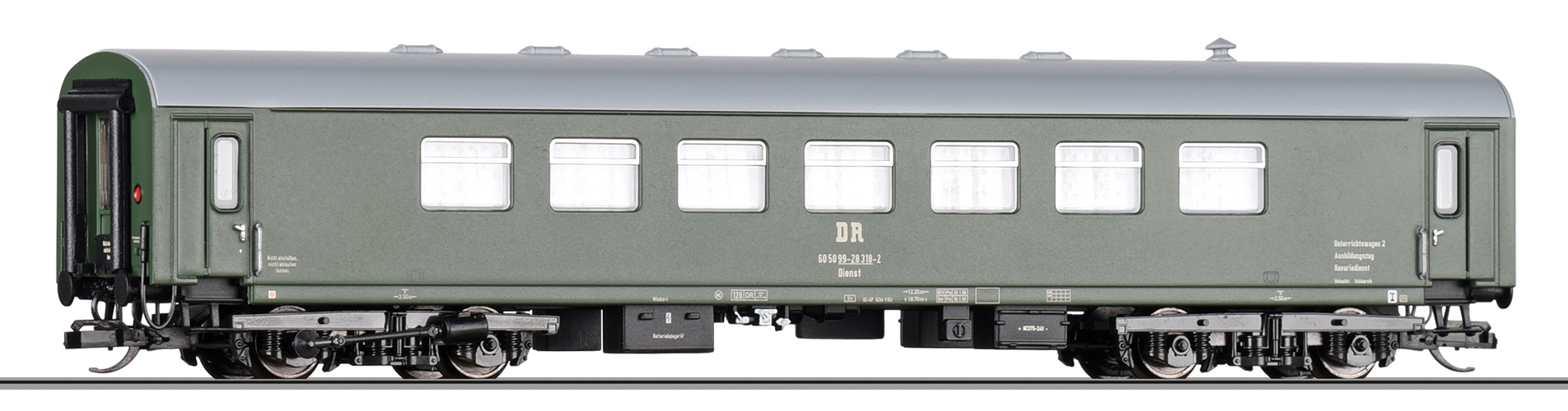 | pomocný vůz zelený s šedou střechou do výcvikového vlaku „Ausbildungszug Havariedienst“ |