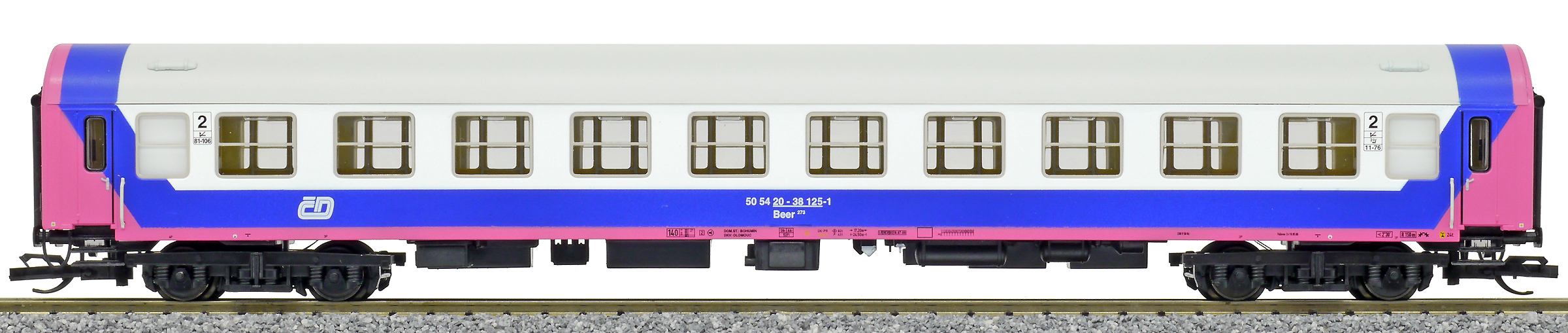 měřítko 1:120 - rozchod kolejí 12 mm vnitřní interiér vozu je možná instalace osvětlení interiéru kinematika krátkého spřáhla (KKK) podle normy NEM 358 2x204 mm - celková délka modelu přes nárazníky 2x4 - celkový počet náprav nebo rozložení náprav