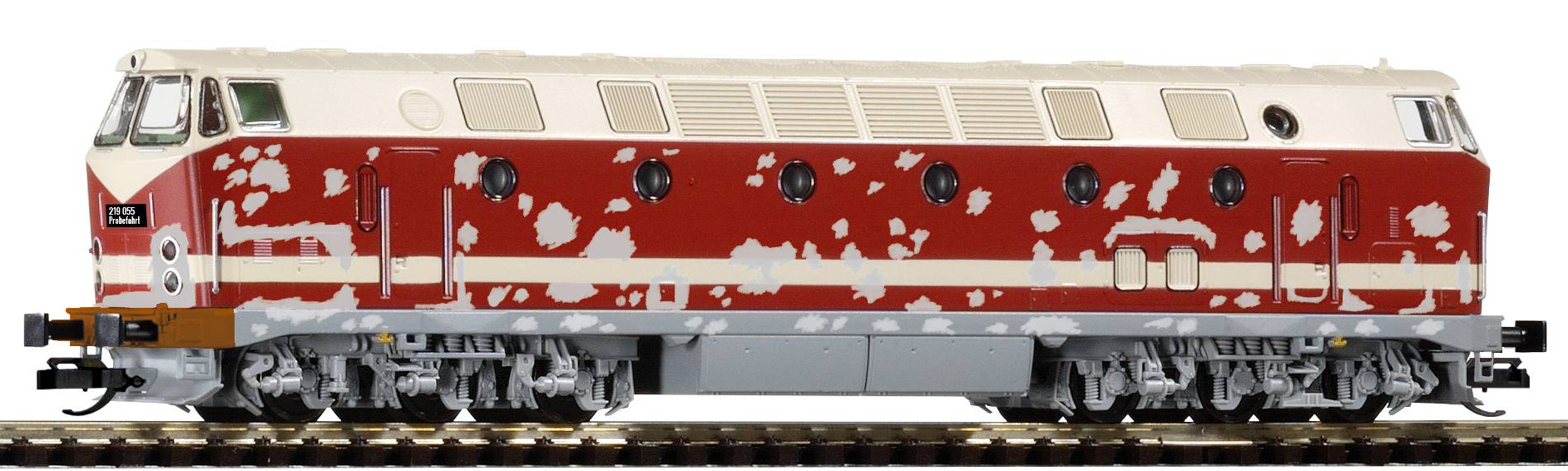 | dieselová lokomotiva červená-slonová kost s proužkem |