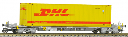 | kontejnerový vůz „IFA” šedý ložený 45' kontejnerem „DHL” |
