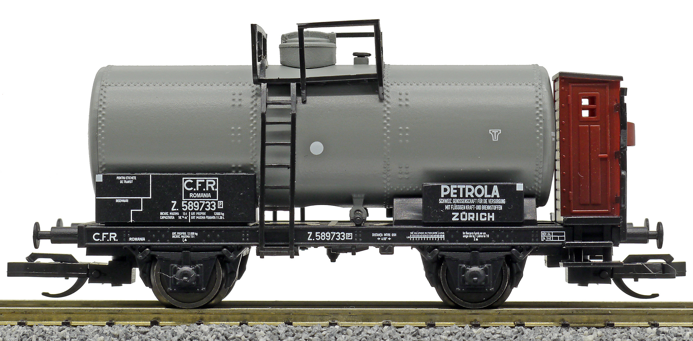 | kotlový vůz černý s brzdařskou budkou „PETROLA Zürich“ |