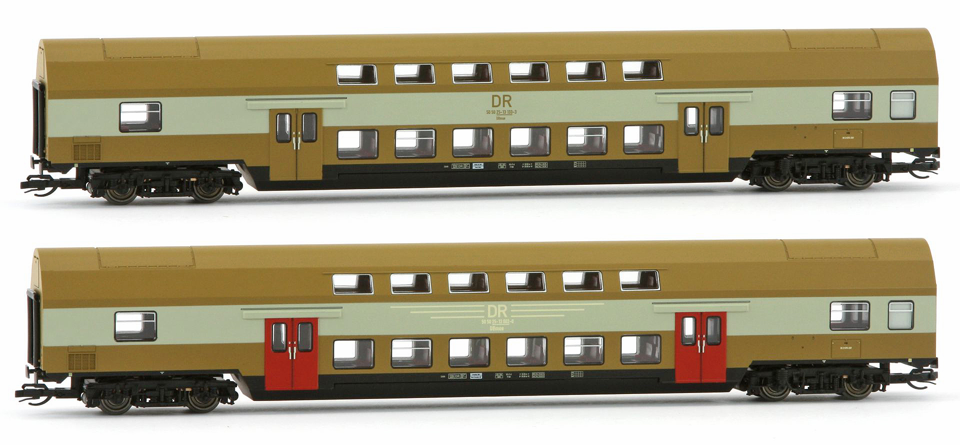 | set dvou středových patrových vozů v experimentálním nátěru |