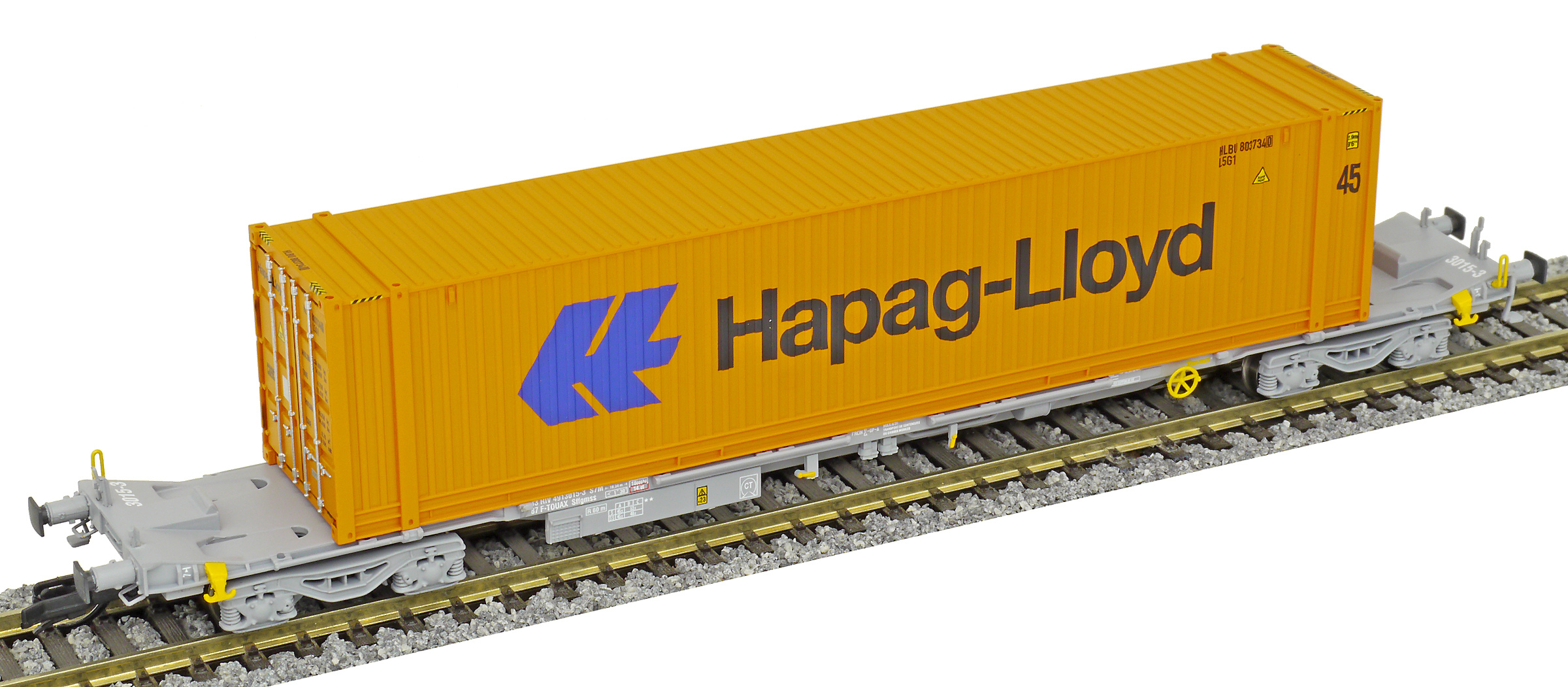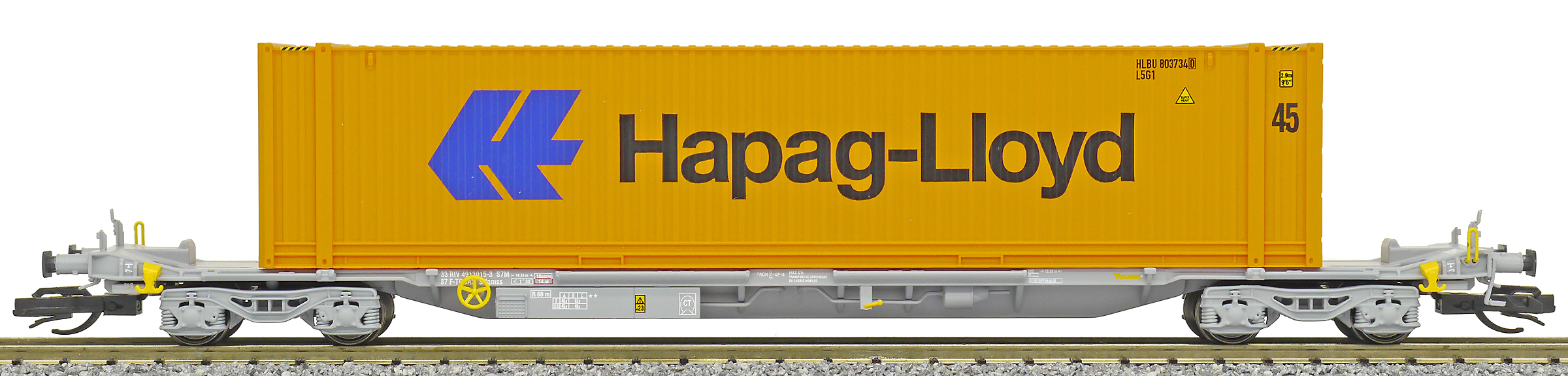 | kontejnerový vůz „IFA” šedý ložený 45' kontejnerem „Hapag-Lloyd” |