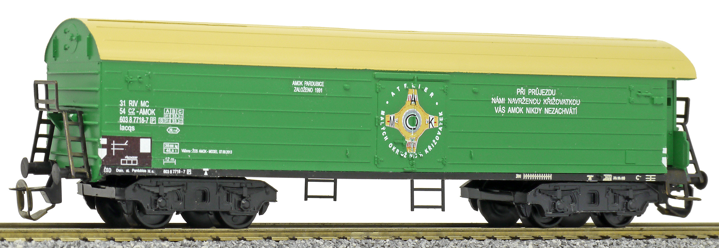 | nákladní chladící vůz zelený s krémovou střechou „AMOK“ |