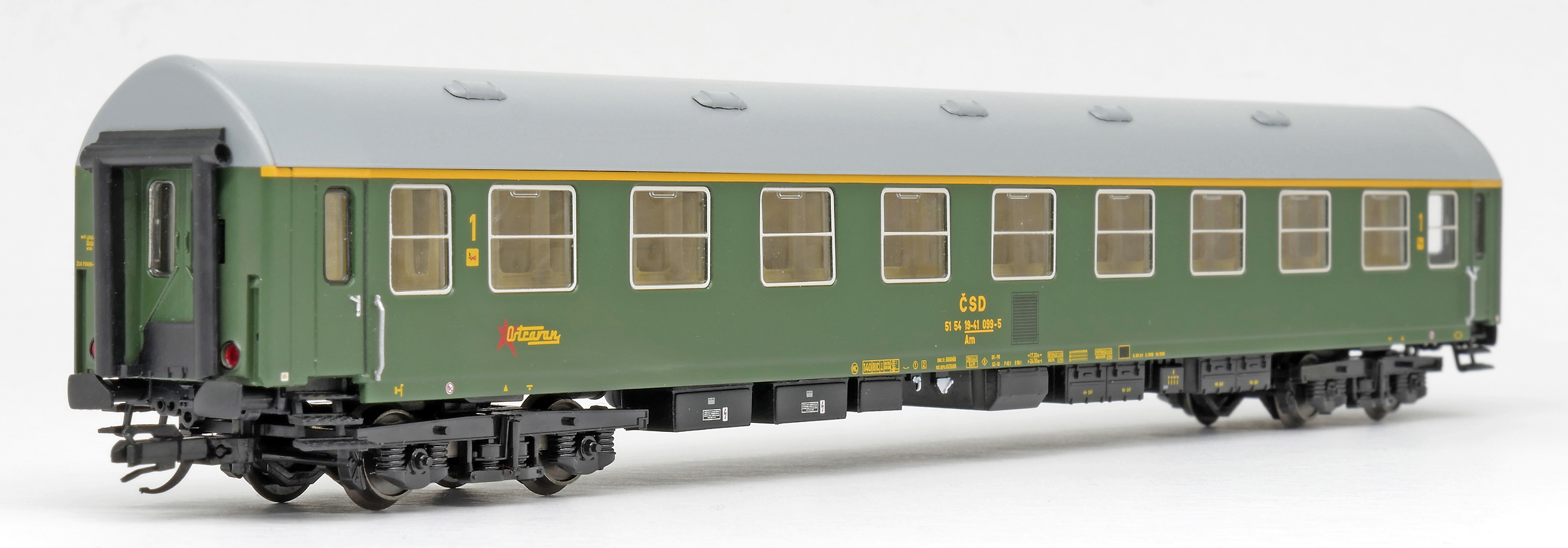 | rychlíkový vůz zelený s šedou střechou 1. tř. „Ostravan“ |