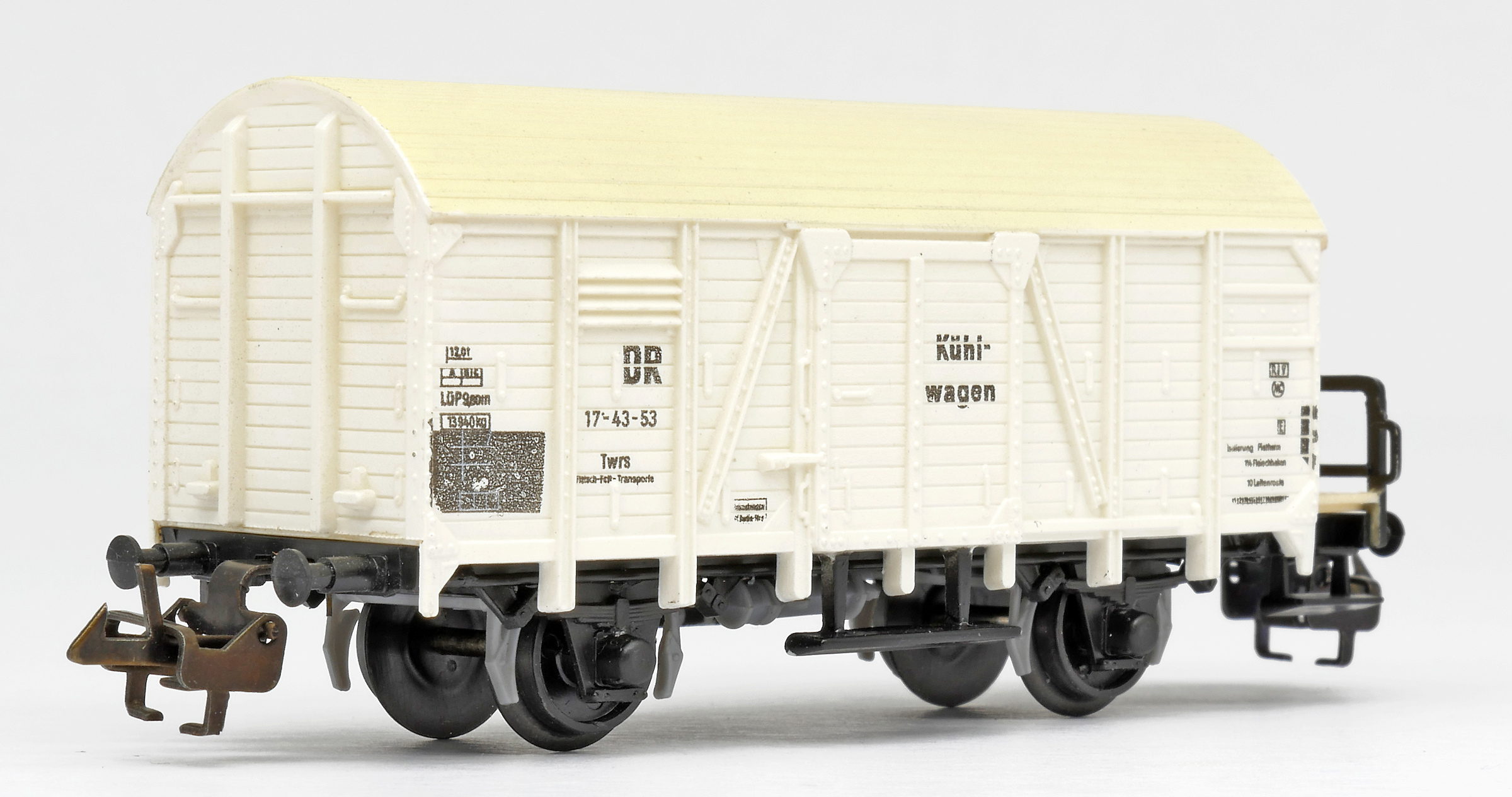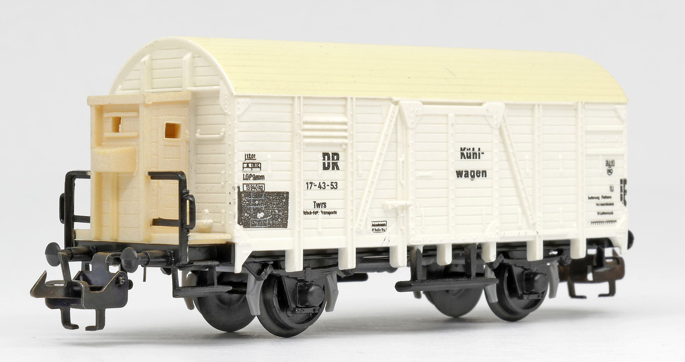 nákladní chladící vůz bílý s krémovou střechou „Kühlwagen“ a s brzdařskou budkou
