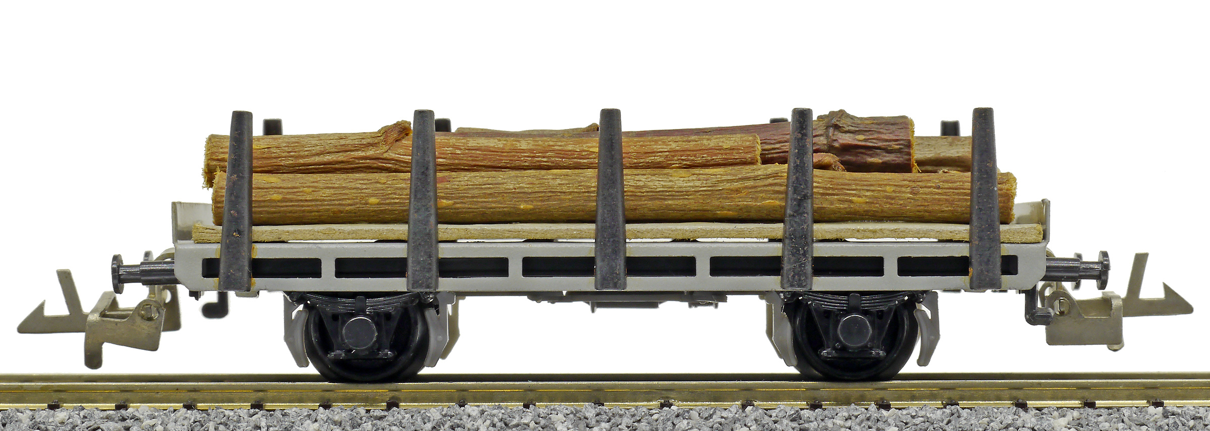 | plošinový nákladní vůz s klanicemi s nákladem kulatiny, bez popisu |