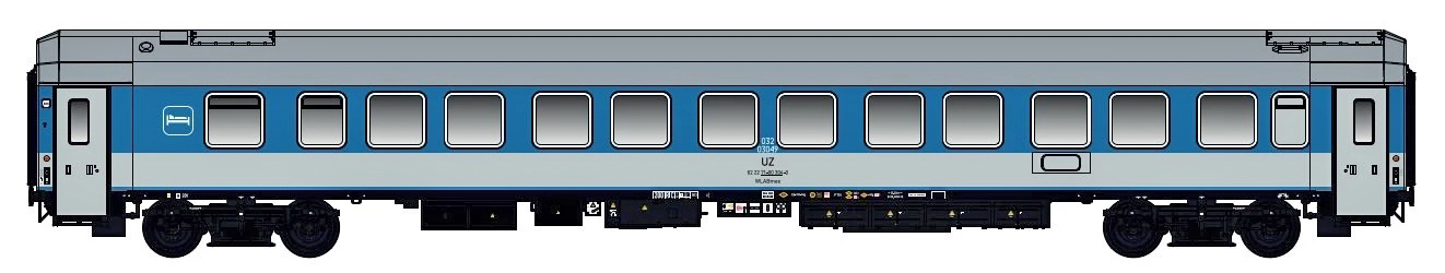 | lůžkový vůz modrý-světle šedý s šedou střechou |