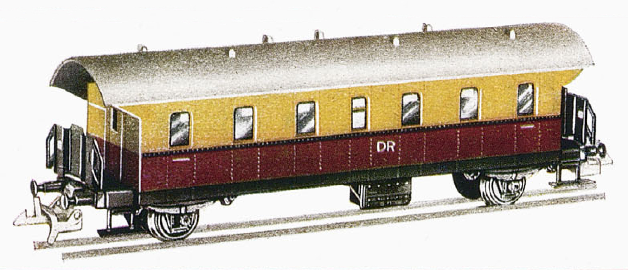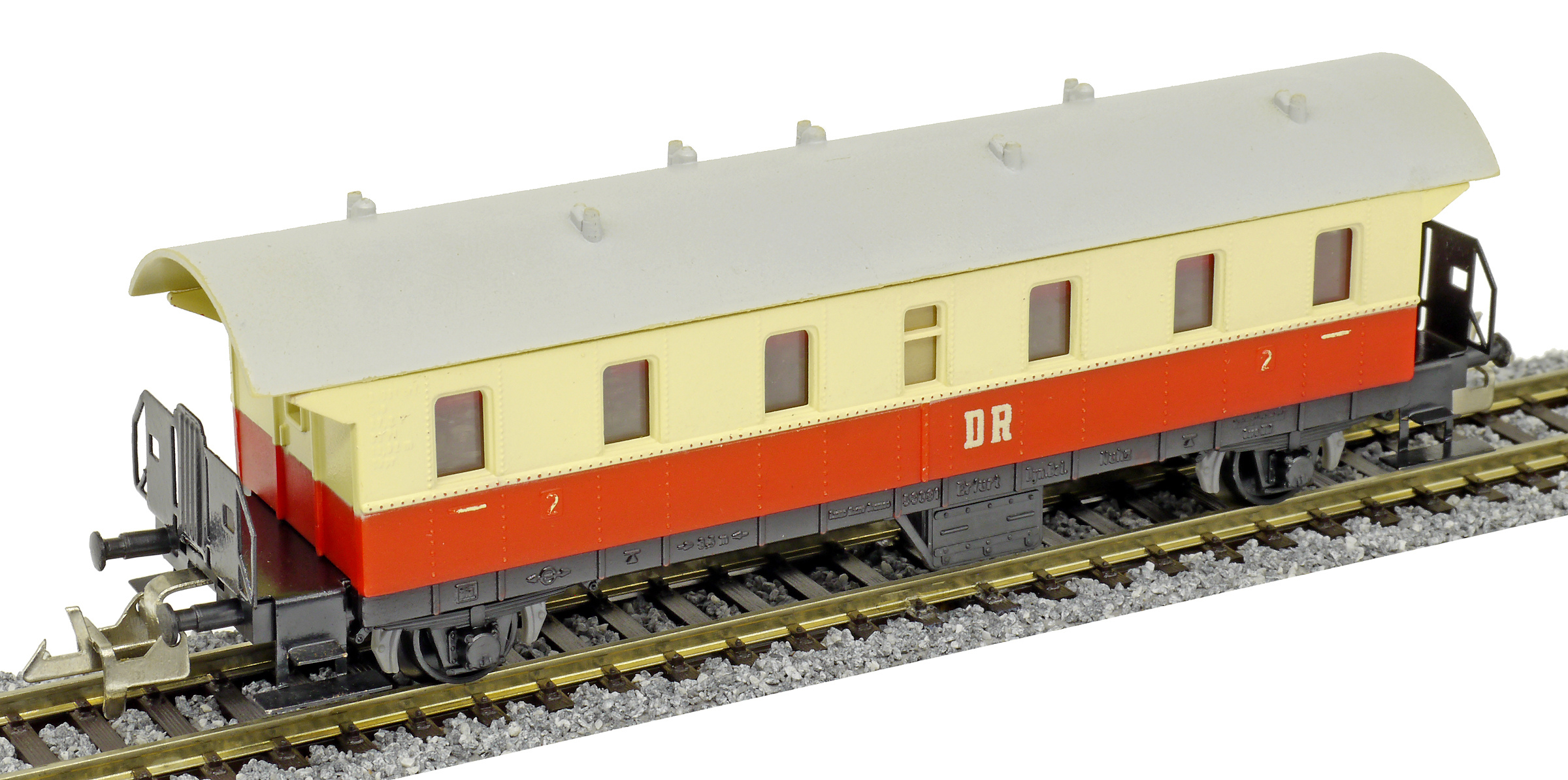 osobní vůz červený-slonová kost s šedou střechou 2. tř.