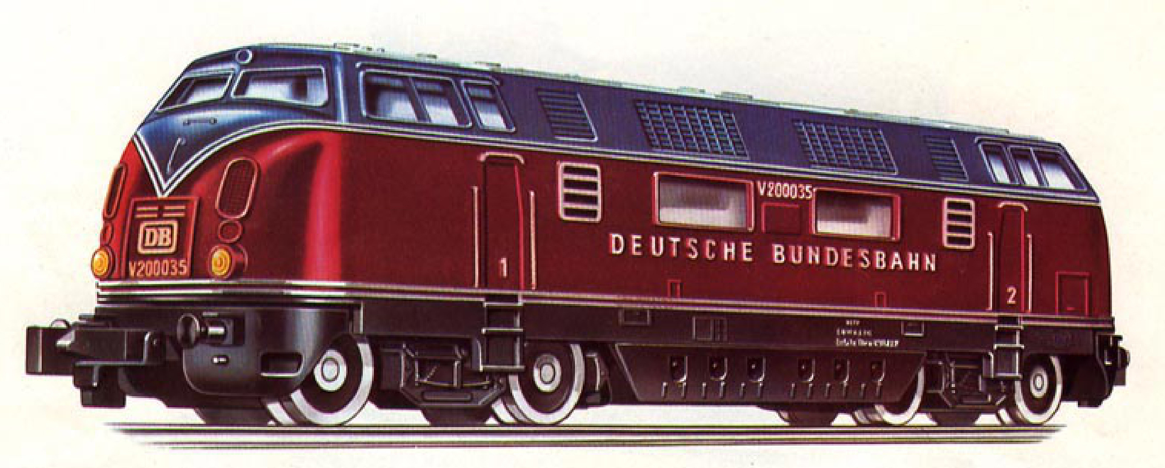 Popis   dieselová lokomotiva červená-tmavě šedá s plastickým nápisem „DEUTSCHE BUNDESBAHN“