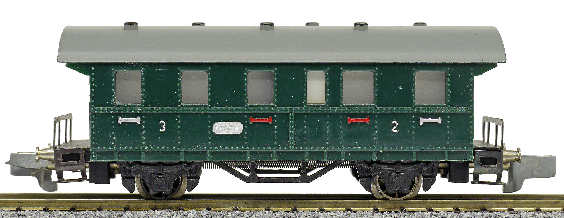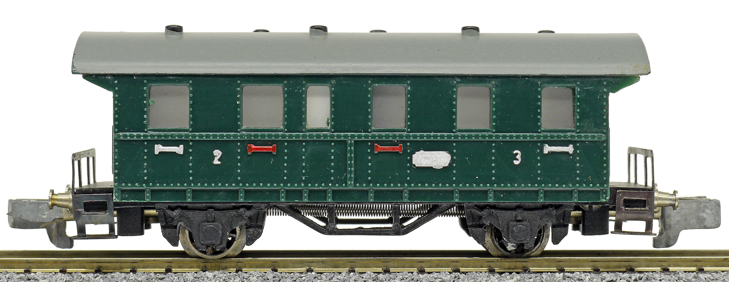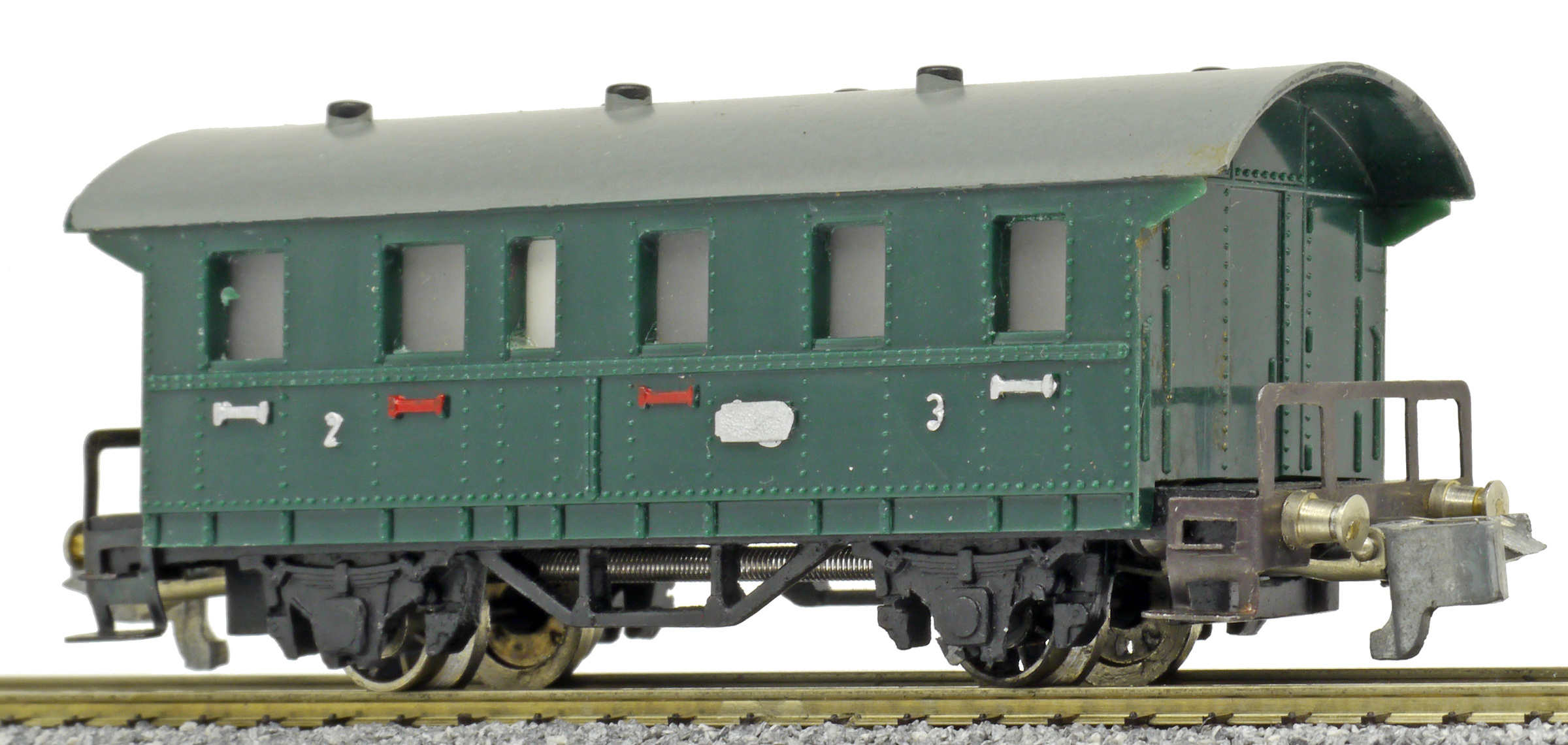 osobní vůz zelený s šedou střechou 2./3. tř.