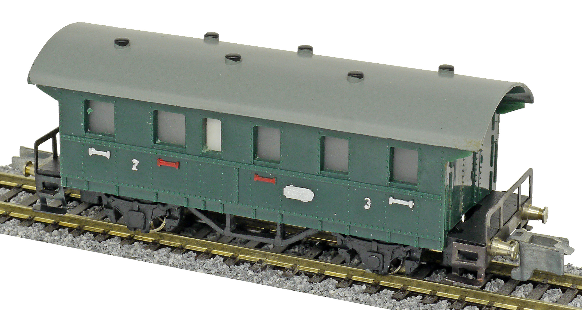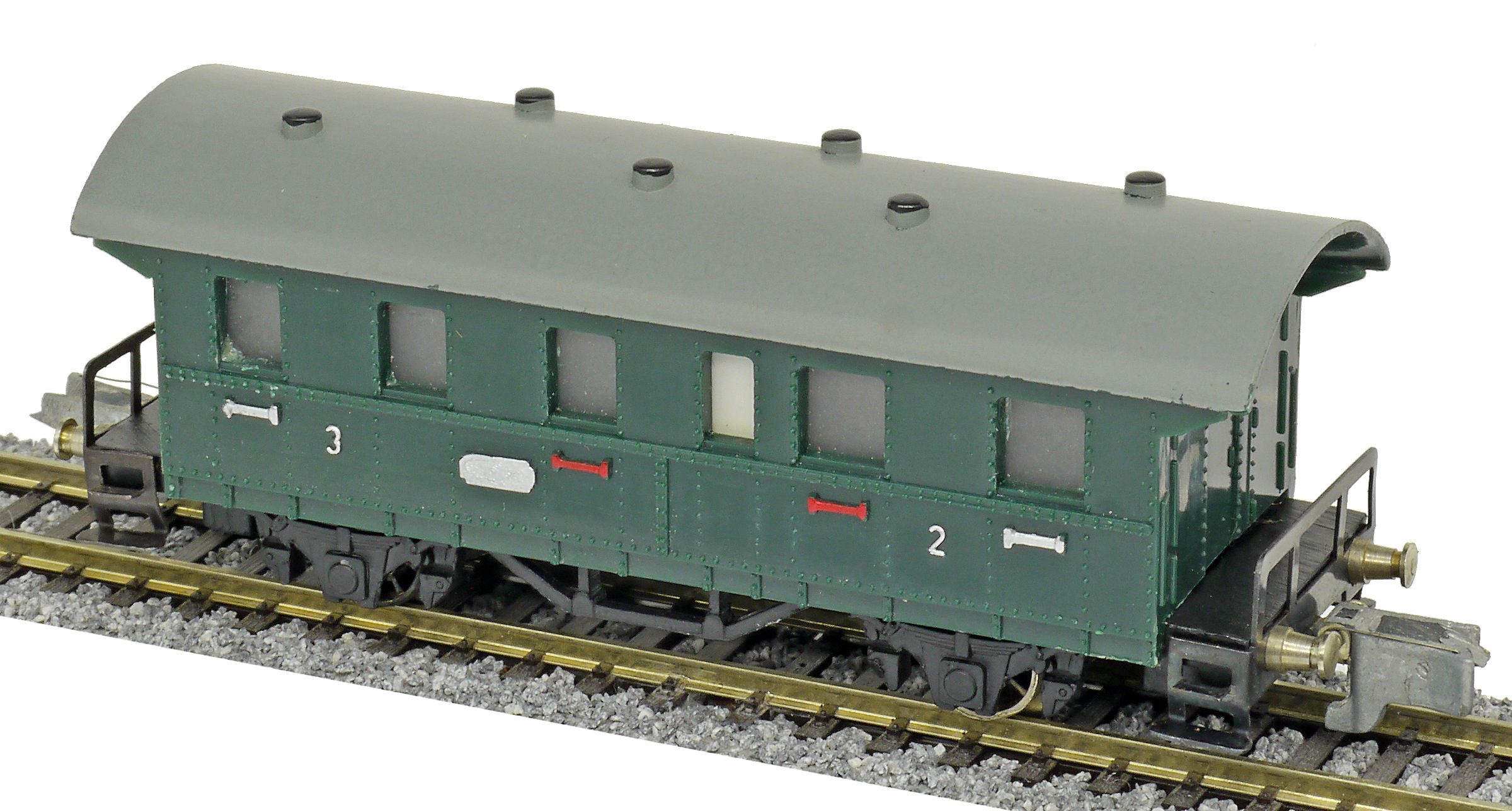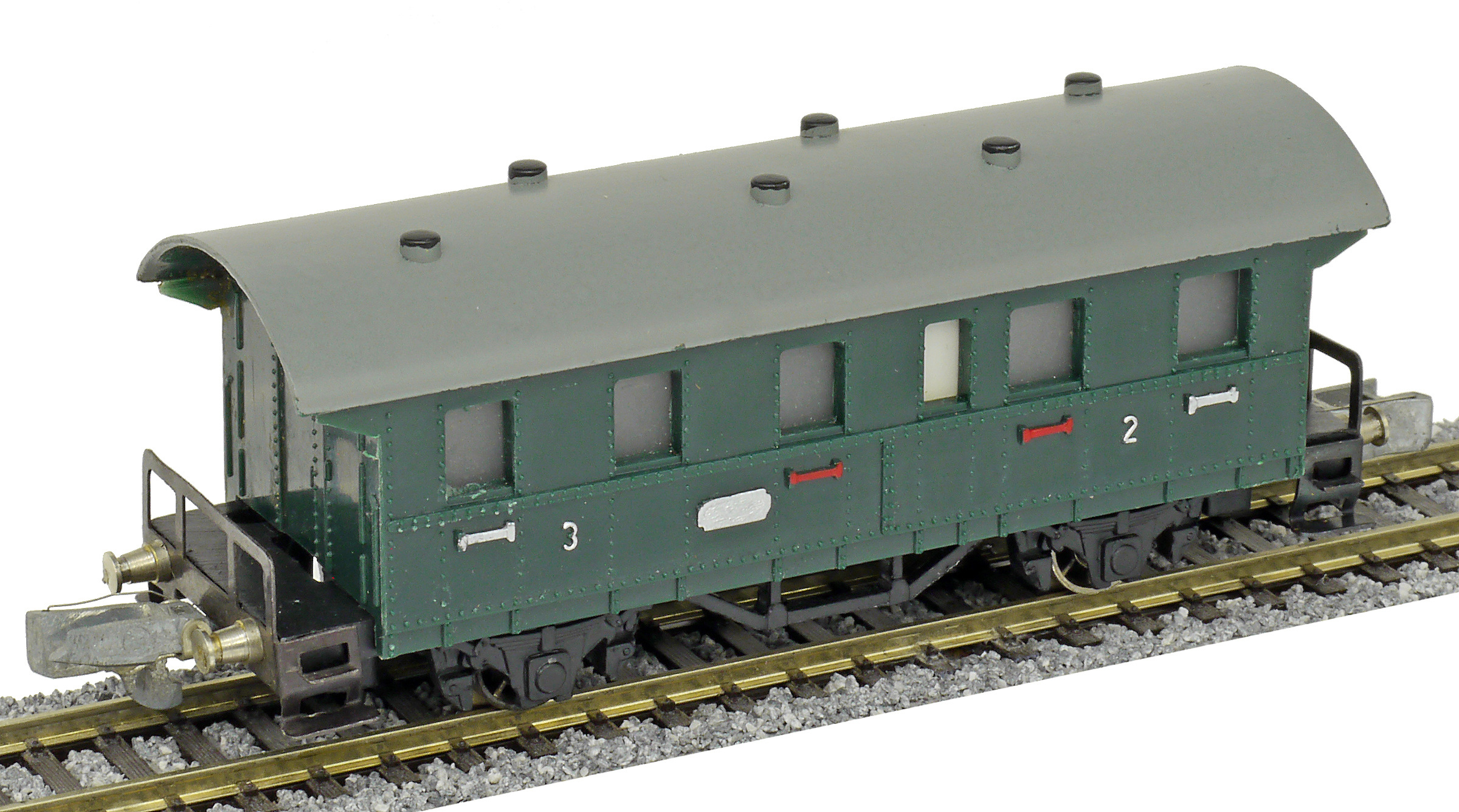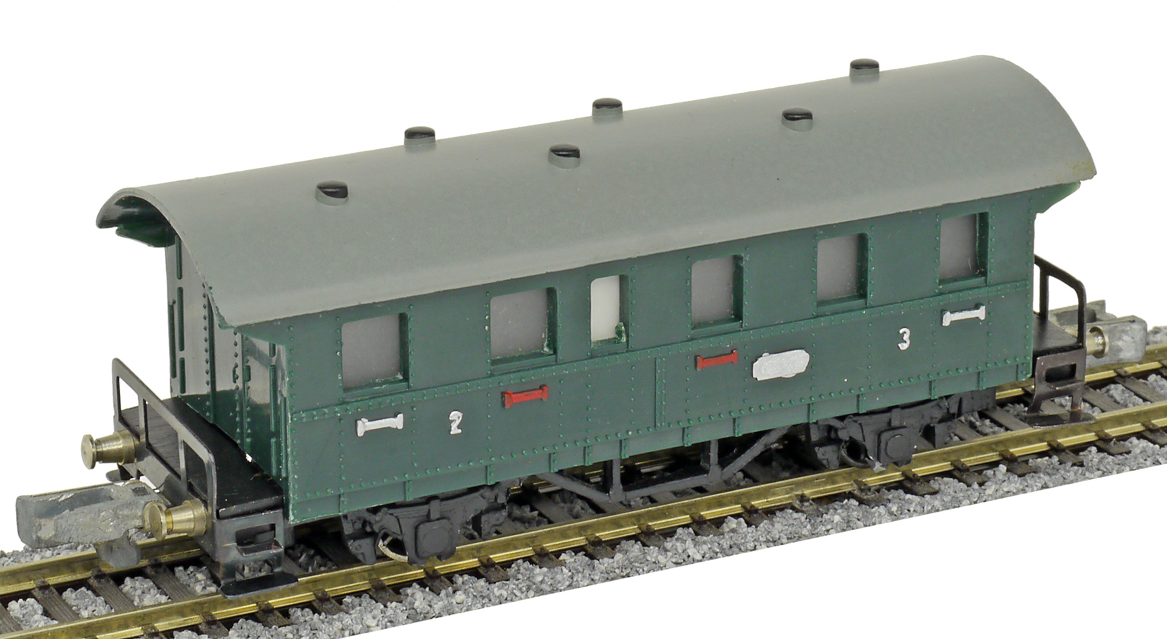 osobní vůz zelený s šedou střechou 2./3. tř.