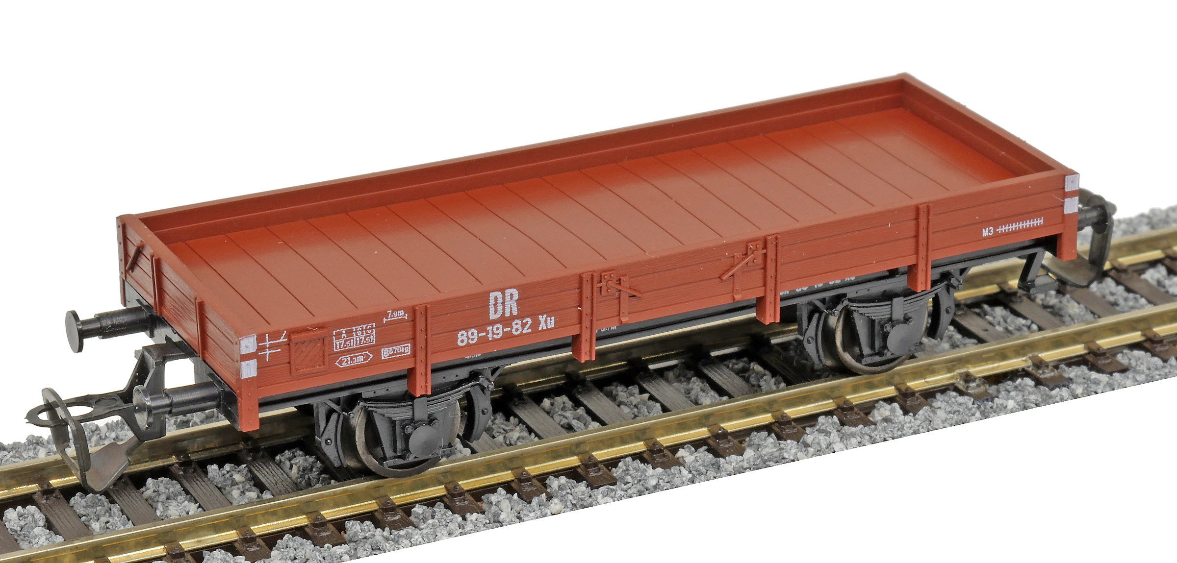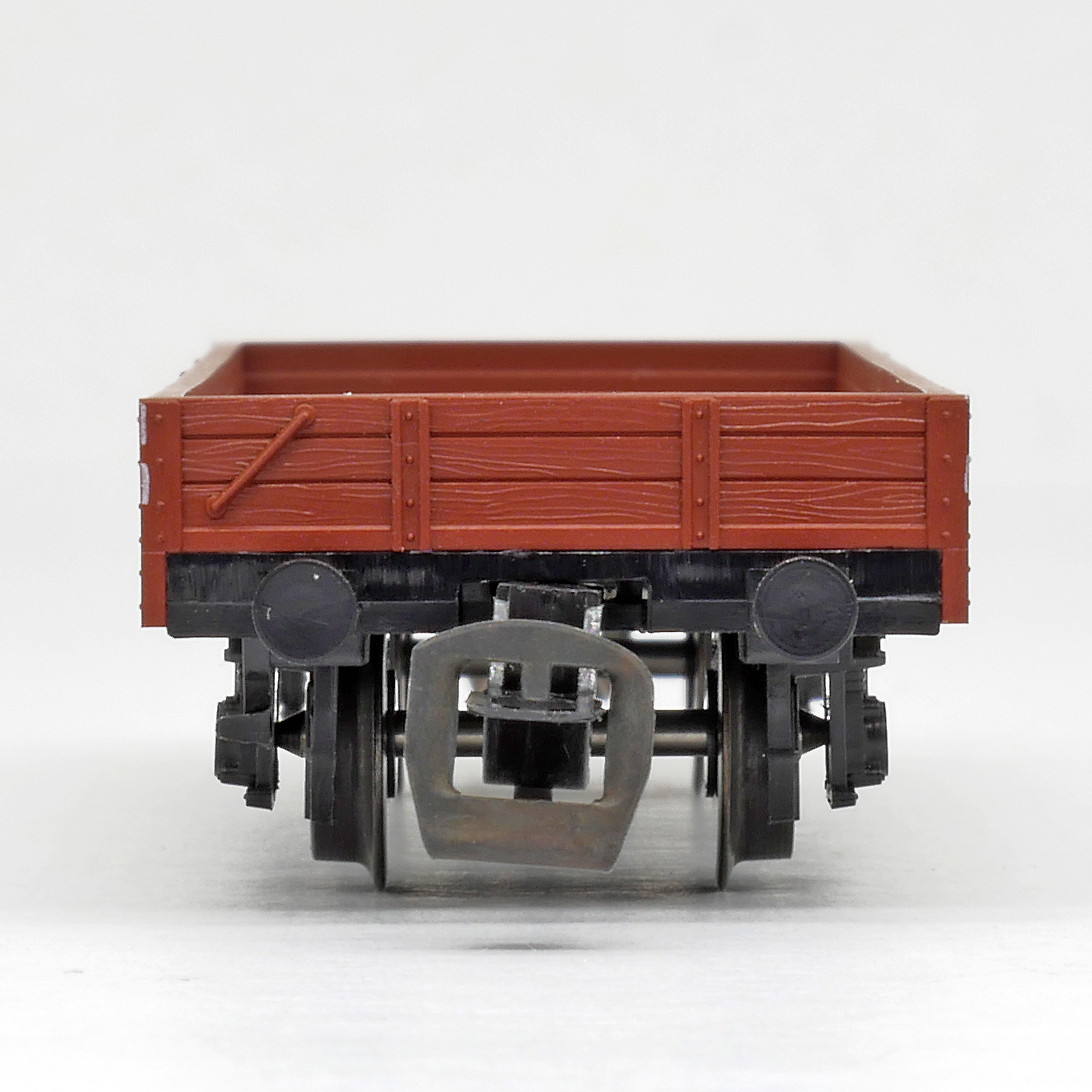 | nízkostěnný nákladní vůz červenohnědý s černým pojezdem |