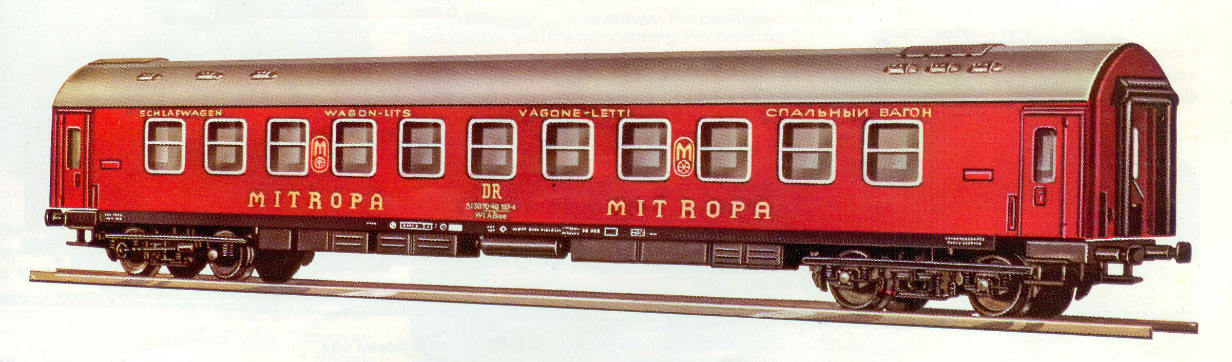 lůžkový vůz červený s šedou střechou „MITROPA“
