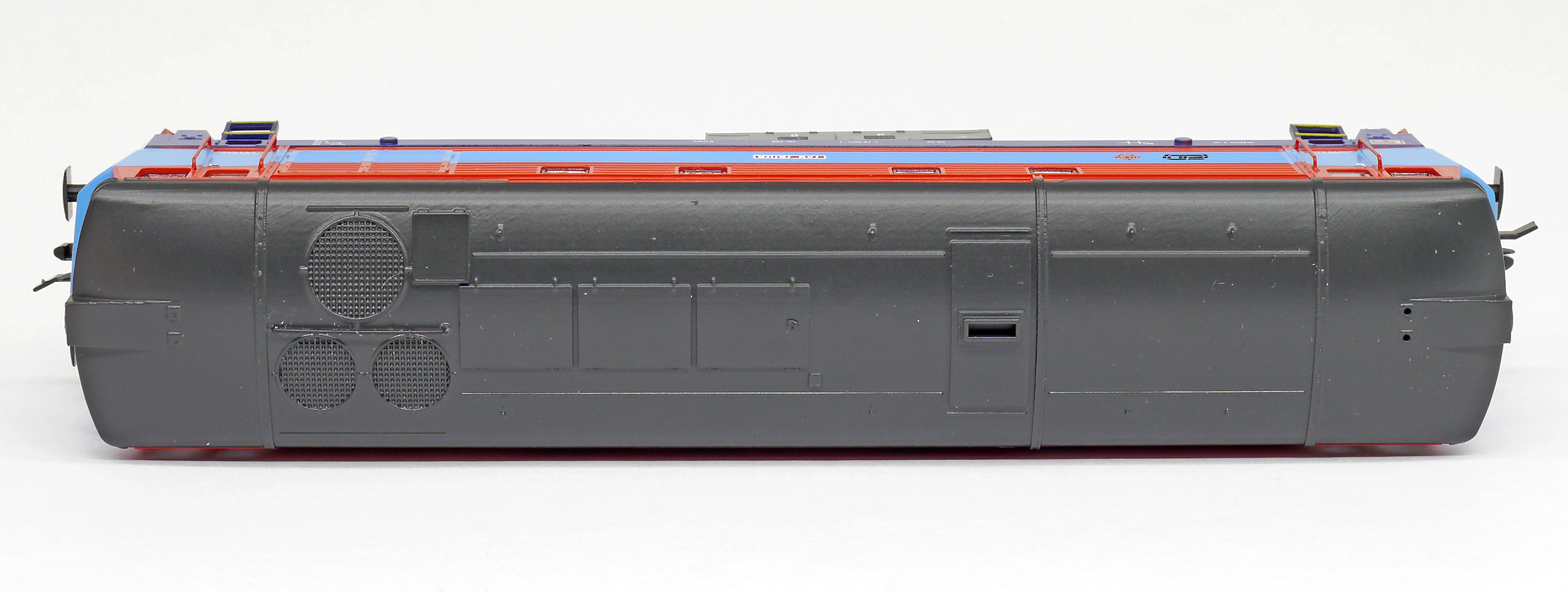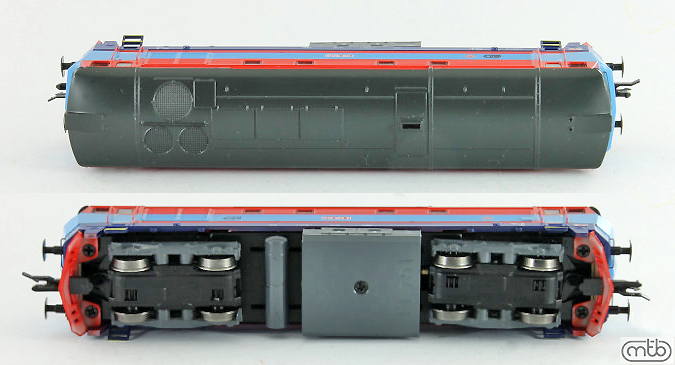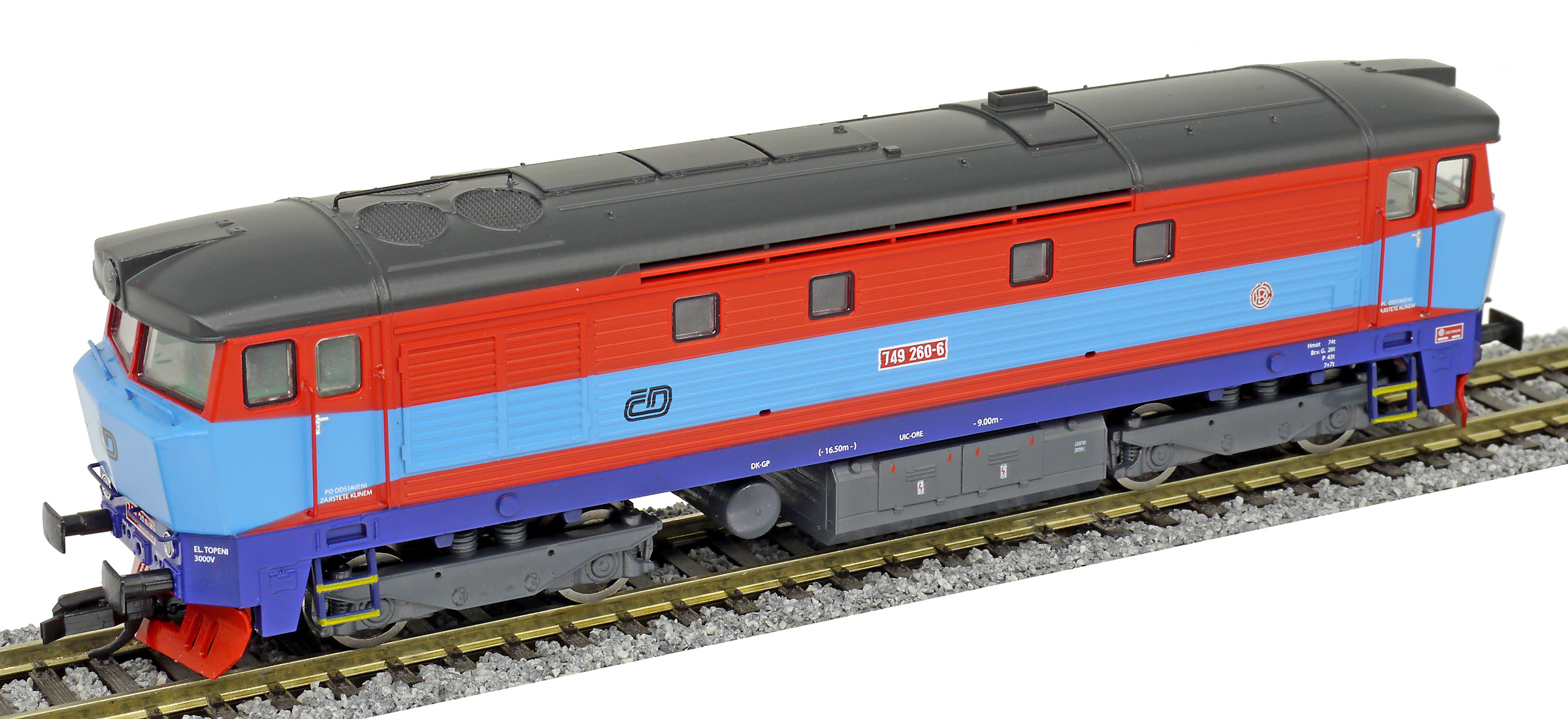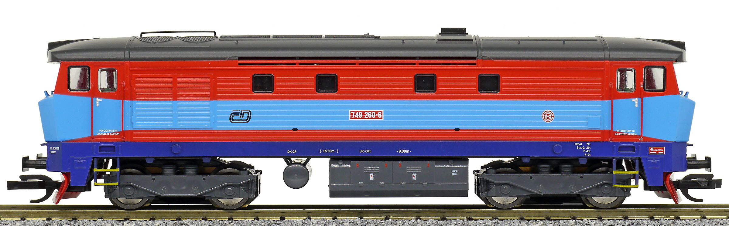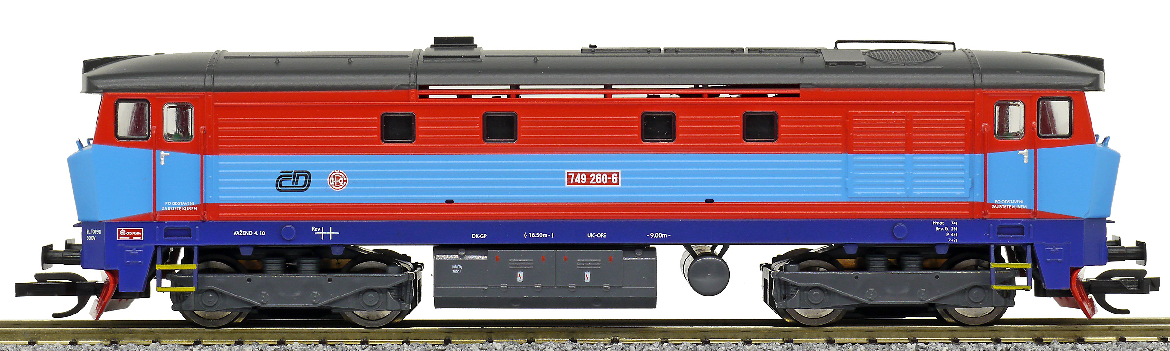 Popis   dieselová lokomotiva červená-modrá, hnědá střecha