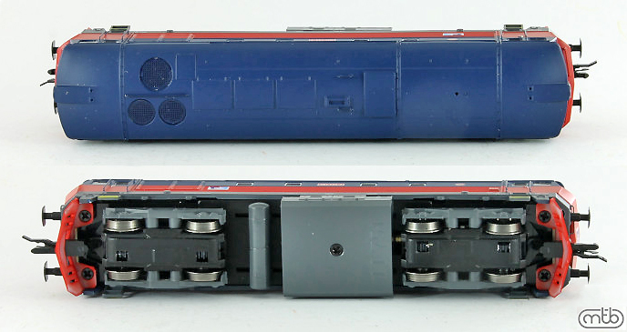 Popis   dieselová lokomotiva červená-modrá, šedý pojezd