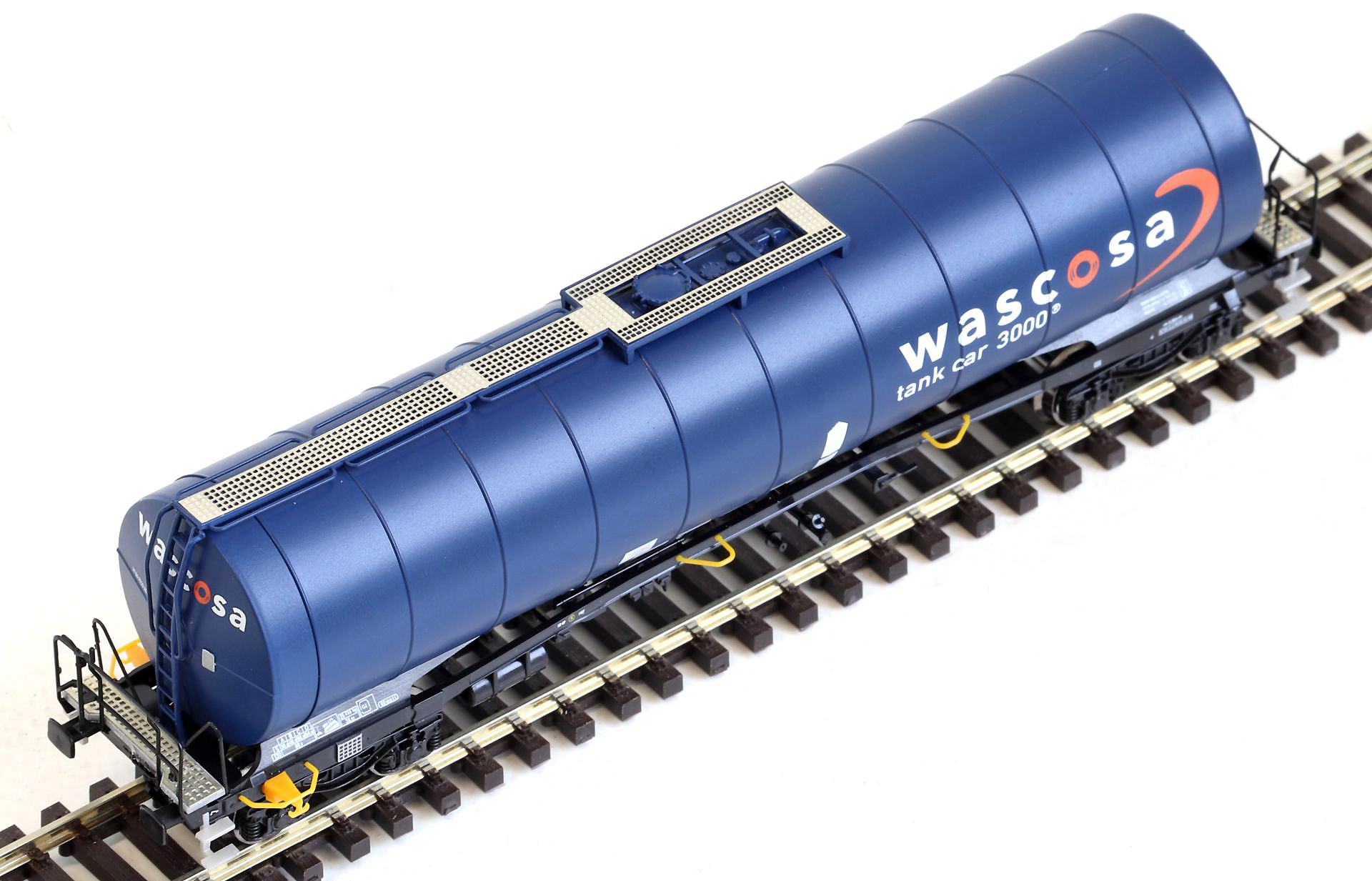 | kotlový vůz tmavě modrý-oranžový s logem „wascosa“ |