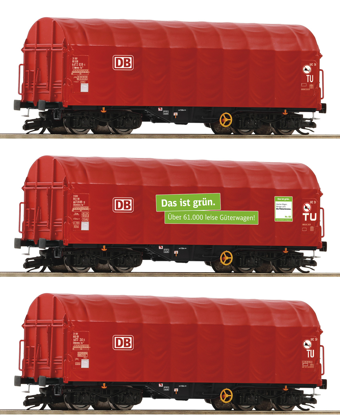 | nákladní plošinový vůz s odsuvnou plachtou s reklamním potiskem „Das ist grün“ |