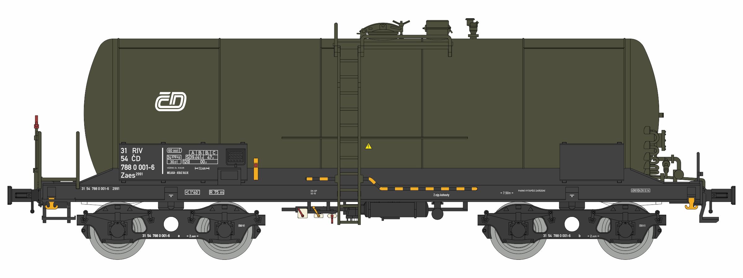 | • Zaes 2991 | - | kotlový vůz (cisterny) s kovovou nádrží, pro přepravu tekutých nebo plynných produktů |