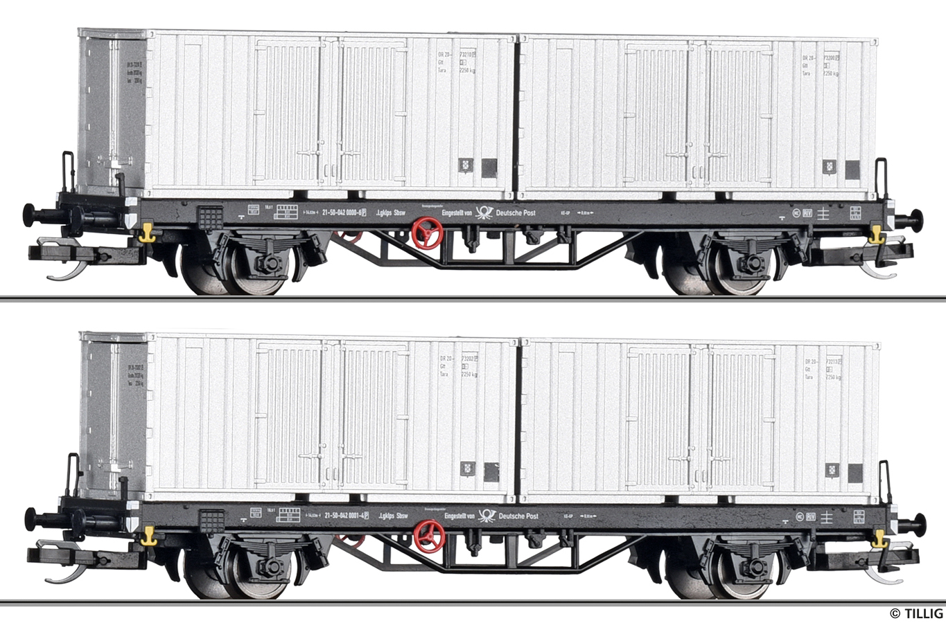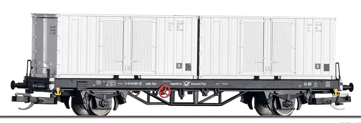 | plošinový vůz se dvěma stříbrnými kontejnery 20' |