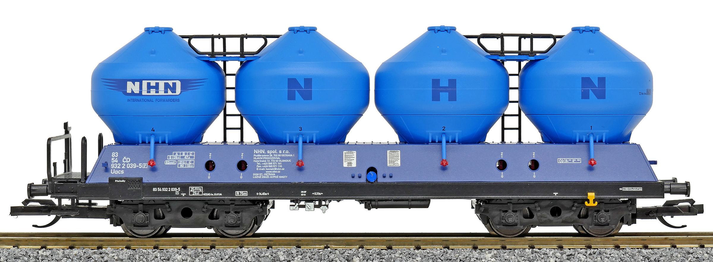 | nákladní samovýsypný vůz modrý s modrými nádobami „NHN“ |
