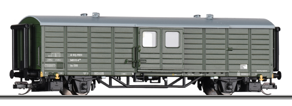 | nářaďový vůz do pracovního vlaku zelený s šedou střechou |