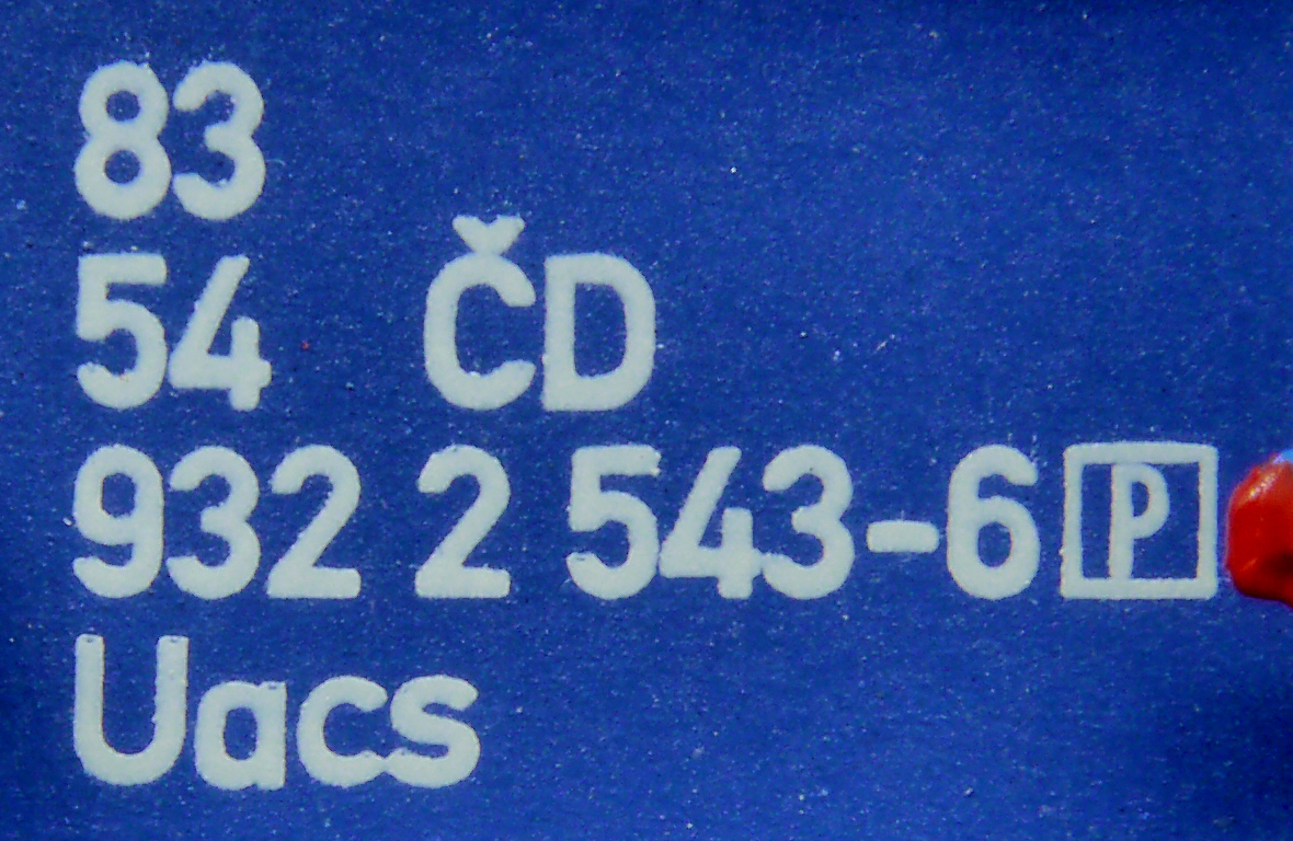 | • 83 54 932 2 543-6 | → | nákladní, s podvozky, soukromý vůz, pro mezinárodní dopravu dle zvláštních úmluv |
