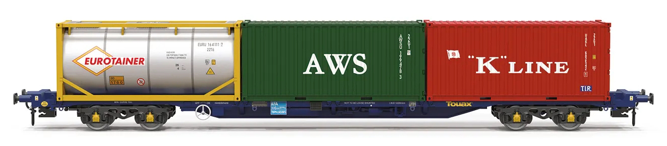 | kontejnerový vůz „KFA“ tmavě modrý šedý ložený 3x20' kontejnery |