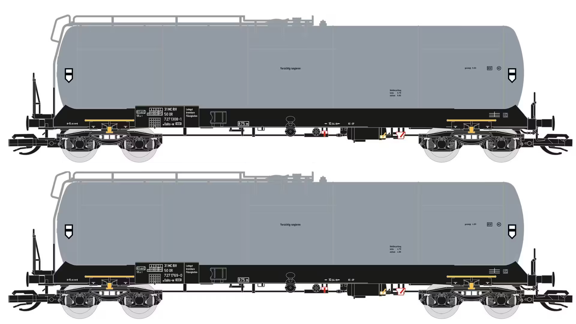 | set dvou šedých kotlových vozů na lehké oleje |