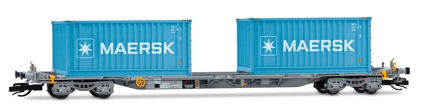 | kontejnerový vůz „IFA” šedý ložený 2x20' kontejnery „MAERSK” |