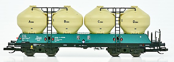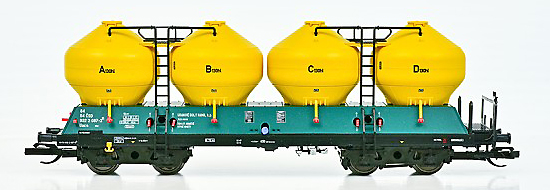 | nákladní samovýsypný vůz zelený se krémovými nádobami |