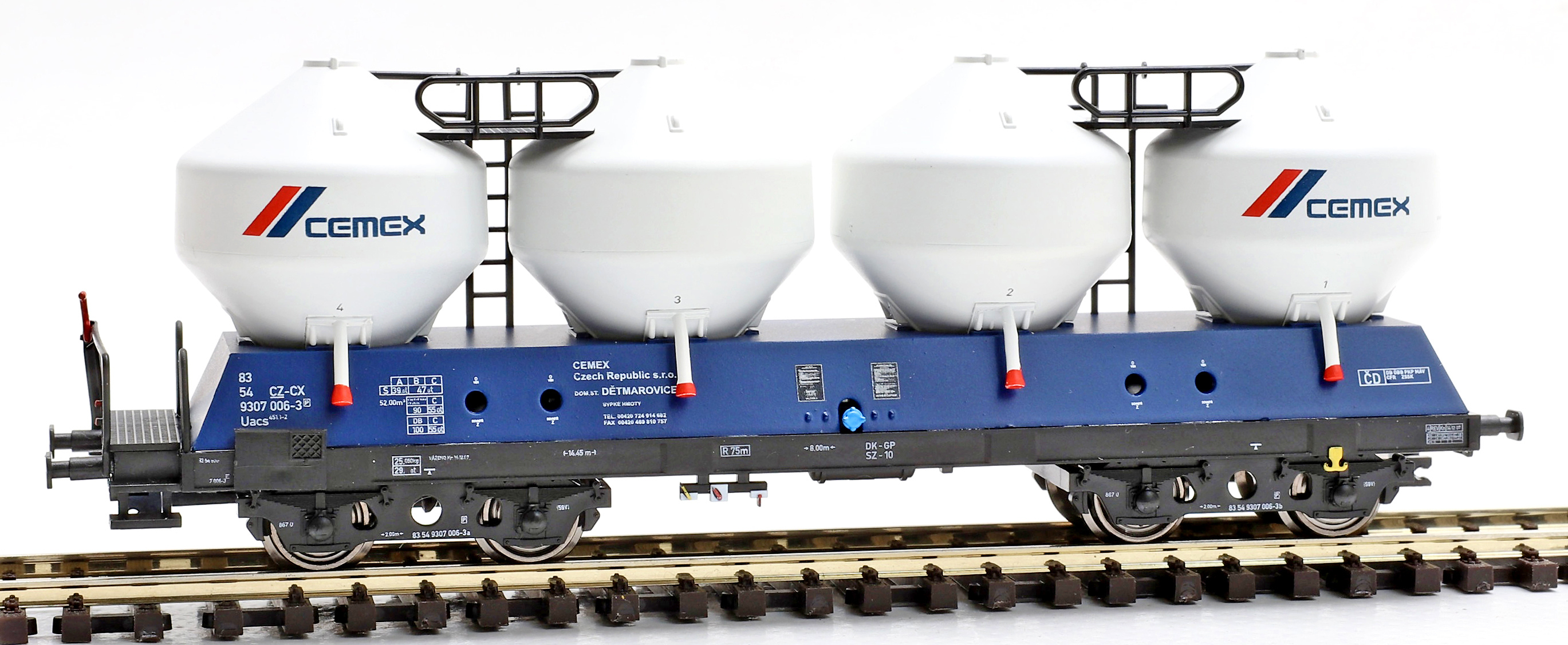 měřítko 1:120 - rozchod kolejí 12 mm kinematika krátkého spřáhla (KKK) podle normy NEM 358 130 mm - celková délka modelu přes nárazníky 4 - celkový počet náprav nebo rozložení náprav