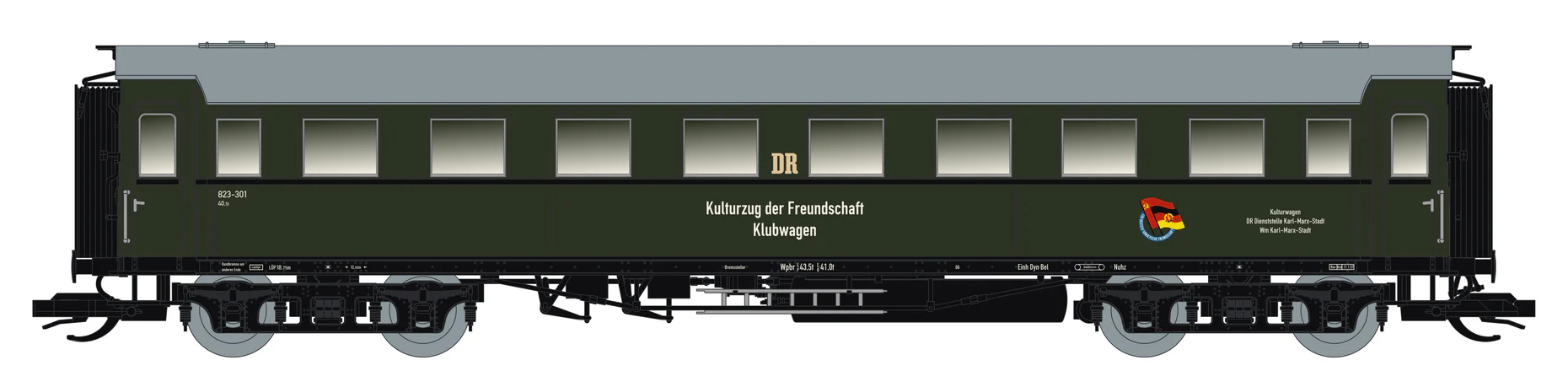 | osobní vůz zelený s šedou střechou „Kulturzug der Freundschaft“ |