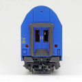 | středový patrový vůz v barvě modré, šedá střecha a dveře |
