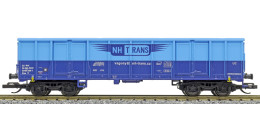 | vysokostěnný nákladní vůz modrý s logem „NH TRANS“ |