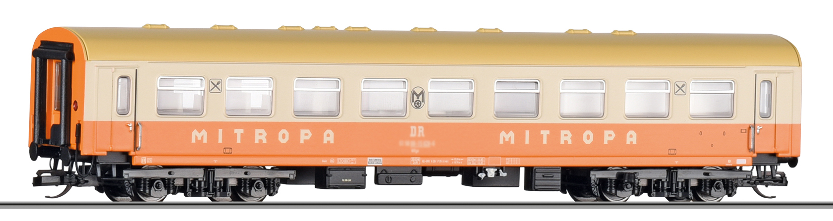 | jídelní vůz oranžový-slonová kost s olivovou střechou „MITROPA“ |