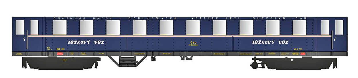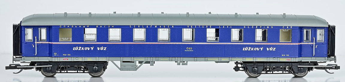 | lůžkový vůz tmavě modrý s šedou střechou |
