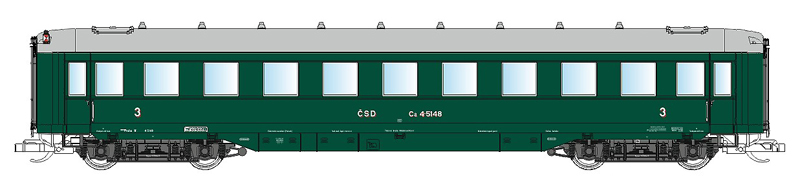 | osobní vůz zelený s šedou střechou 3. tř. |