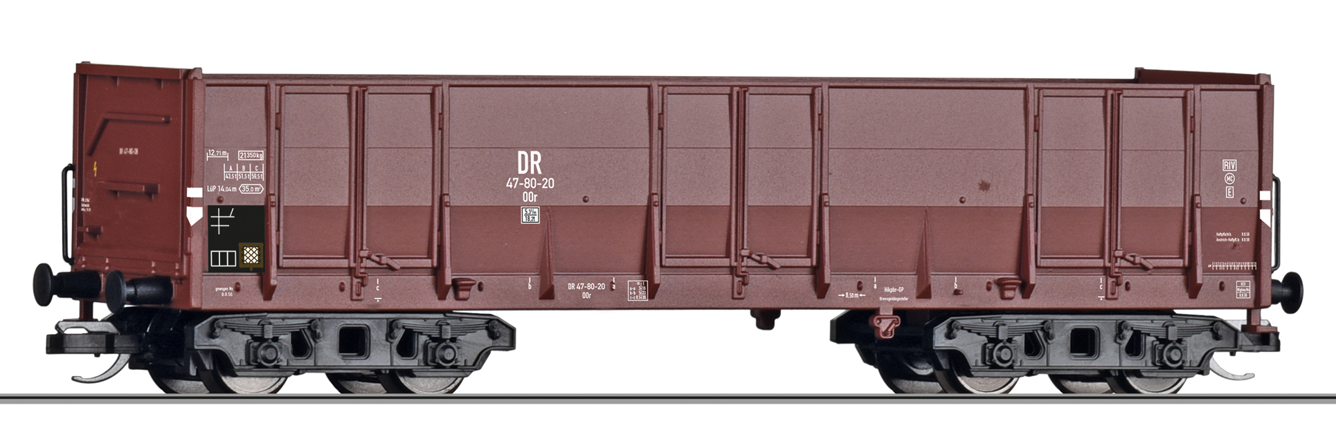 měřítko 1:120 - rozchod kolejí 12 mm kinematika krátkého spřáhla (KKK) podle normy NEM 358 117 mm - celková délka modelu přes nárazníky 4 - celkový počet náprav nebo rozložení náprav