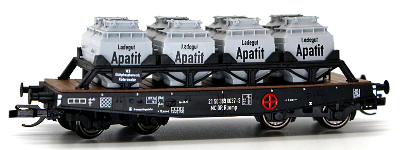 | plošinový nákladní vůz s kontejnery na přepravu vápna „Apatit“ |