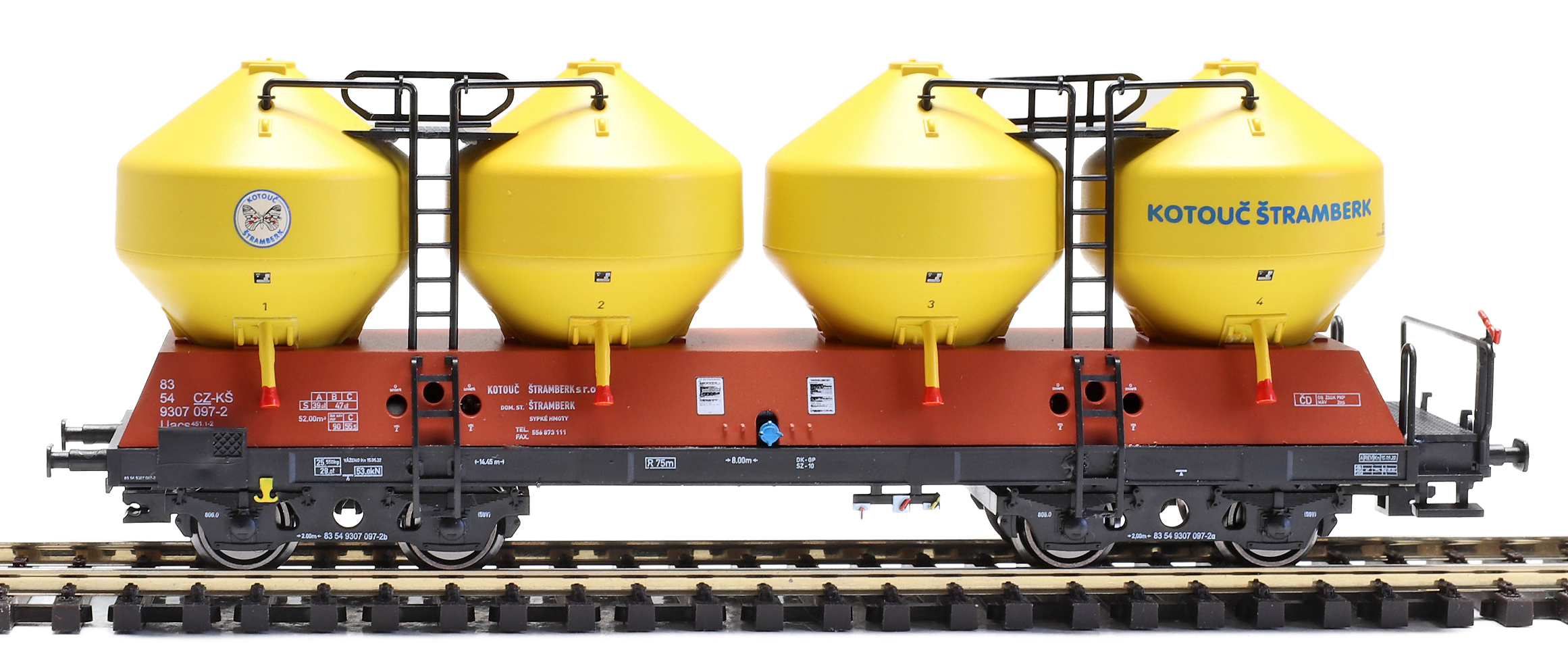 měřítko 1:120 - rozchod kolejí 12 mm kinematika krátkého spřáhla (KKK) podle normy NEM 358 130 mm - celková délka modelu přes nárazníky 4 - celkový počet náprav nebo rozložení náprav