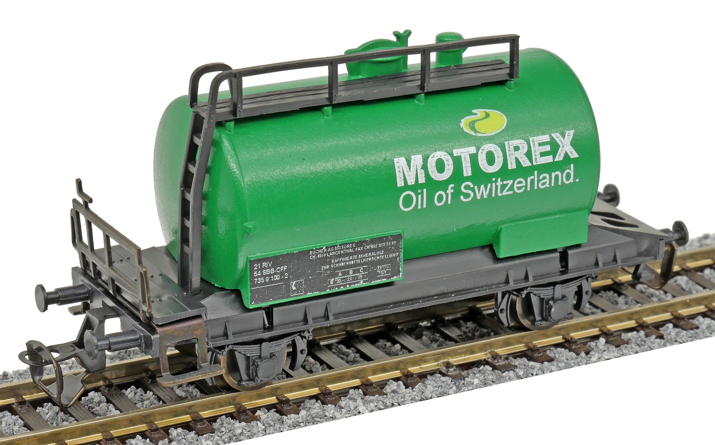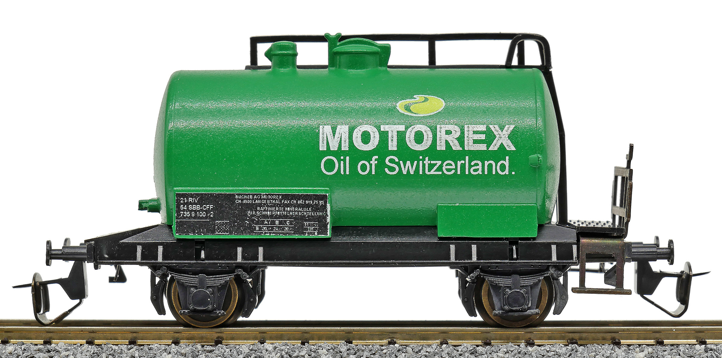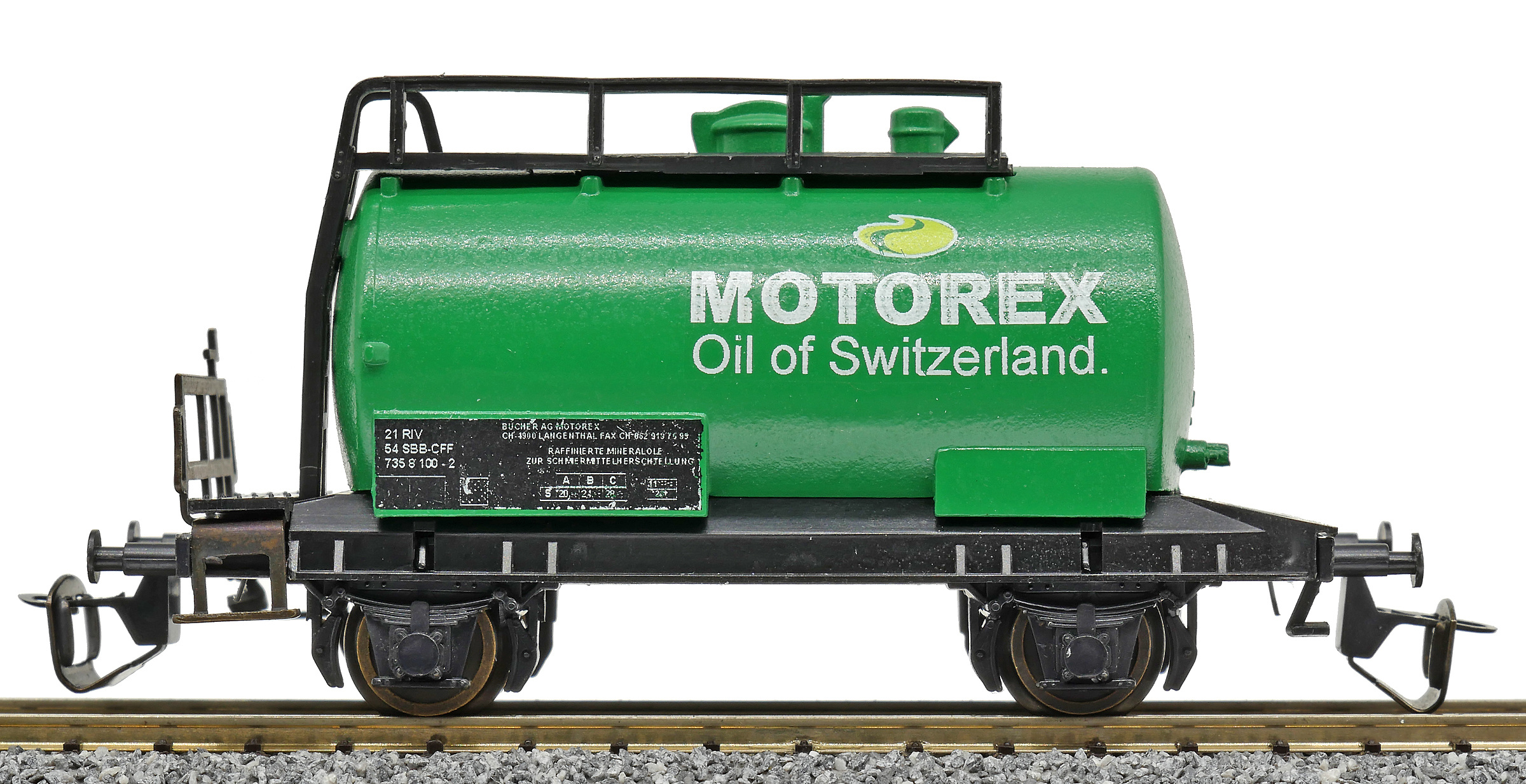 Popis   kotlový vůz zelený s logem „MOTOREX“