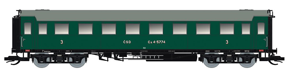 | oddílový osobní vůz zelený s šedou střechou 3. tř. |